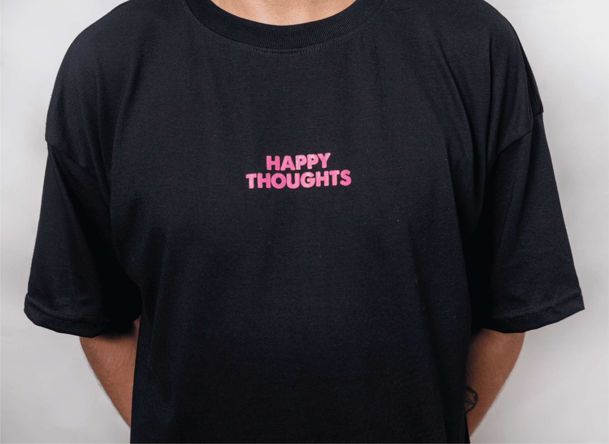 Esta prenda se inspira en los letreros de seguridad de las empresas, aquellos que registran los días sin accidentes. Si prestas atención, verás que 765 marcas conforman lo que debería ser el logo de Happy Thoughts. Sin embargo, como en el amor, los accidentes pasan.